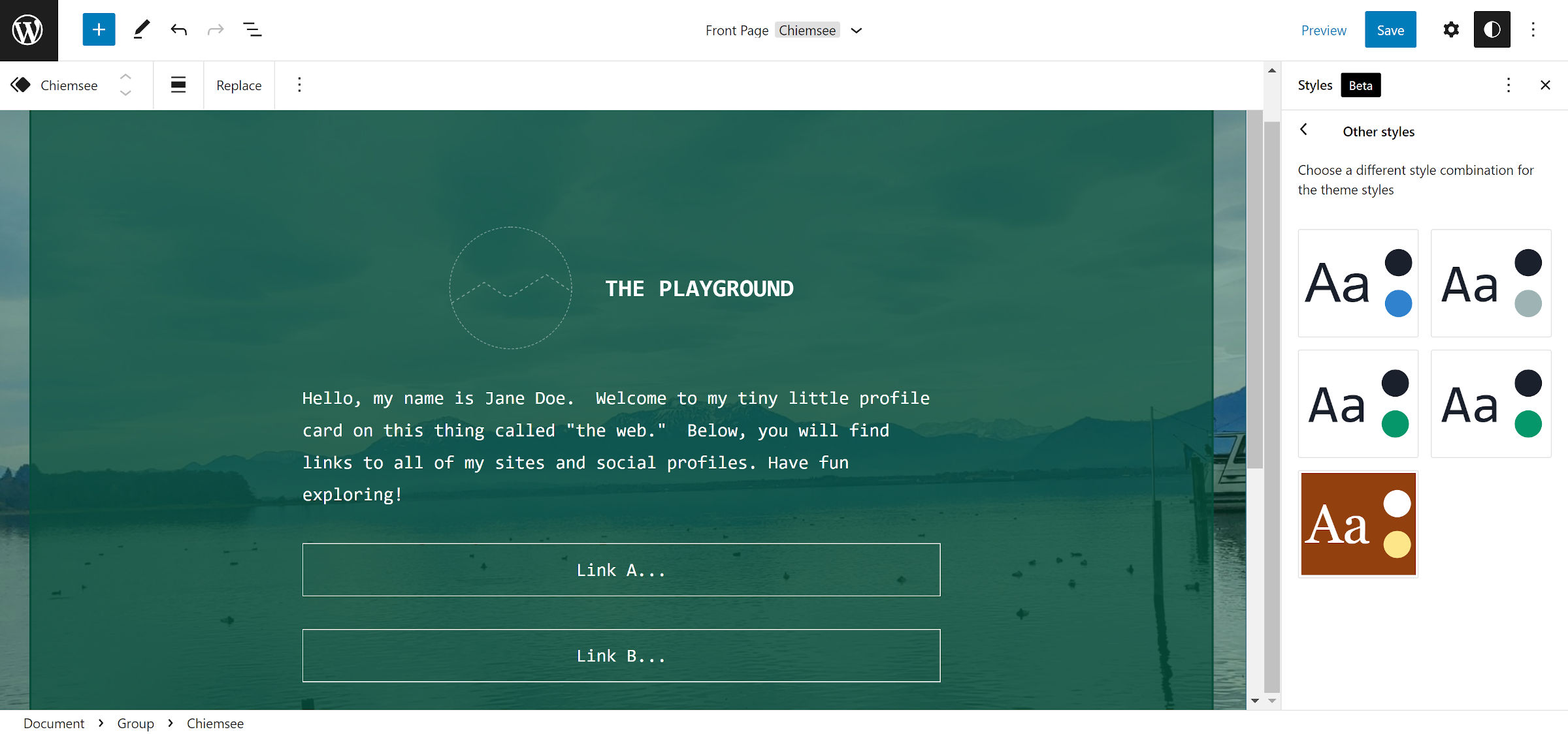 Gli autori dei temi ora possono creare più variazioni di theme.json e inserirle nella cartella /styles del proprio tema. Quindi, gli utenti possono passare tra i vari preset a qualcosa che si adatta meglio a loro.