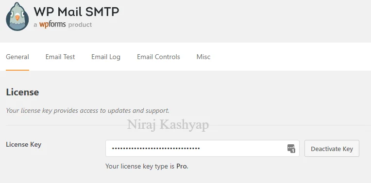 Fare clic su WP Mail SMTP > Impostazioni e inserire il codice di licenza e fare clic sul pulsante Attiva.