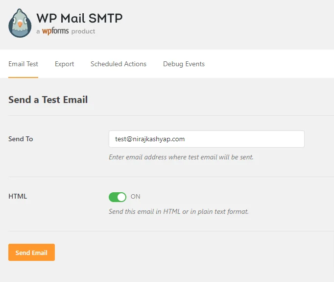 Fare clic sul pulsante Invia e-mail . Se ricevi un'e-mail di prova dal tuo sito WordPress, hai eseguito le impostazioni corrette. Se ricevi un errore, controlla di nuovo le tue impostazioni.