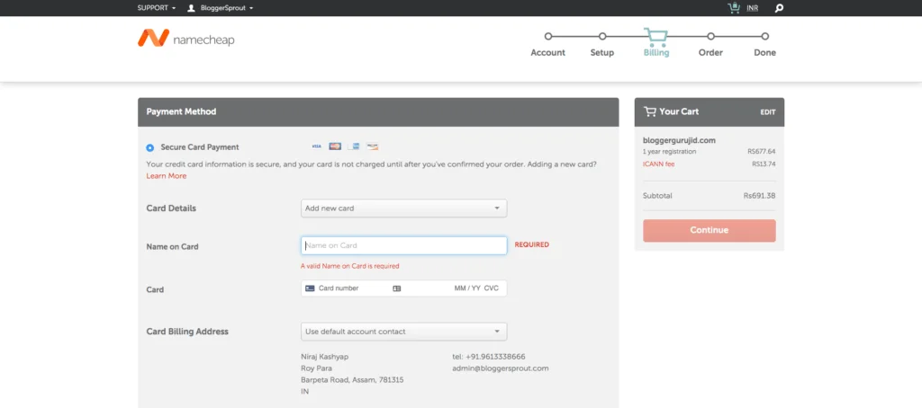 Il problema principale che le persone in INDIA devono affrontare per registrare il nome di dominio è l'opzione di pagamento. Namecheap offre diverse opzioni per effettuare il pagamento incluso il pagamento UPI.
