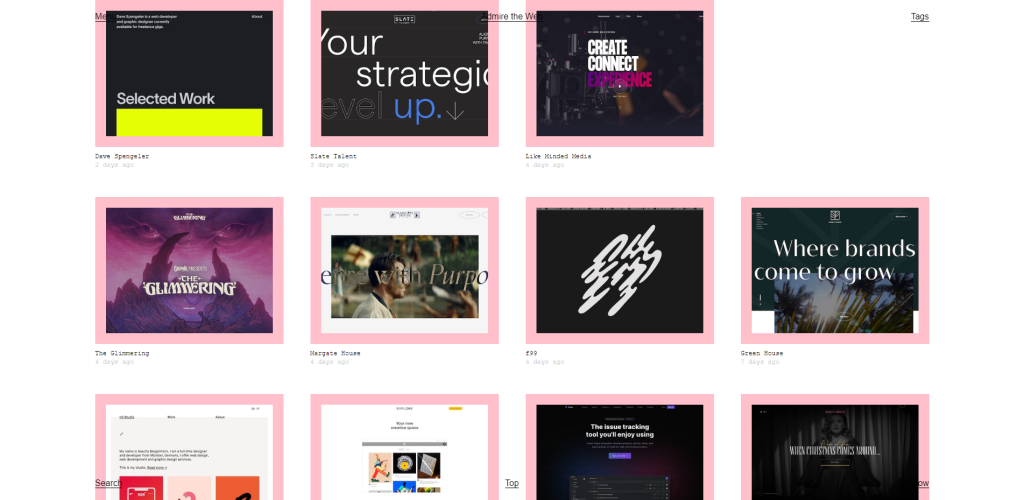 Comprese gallerie incentrate sui design per dispositivi mobili, gallerie che mostrano esempi di effetti "speciali" e alcune risorse incentrate sui modelli di design. In definitiva, questi siti sono pensati per essere esplorati quando stai cercando ispirazione, in particolare nel caso della creazione di un sito web.