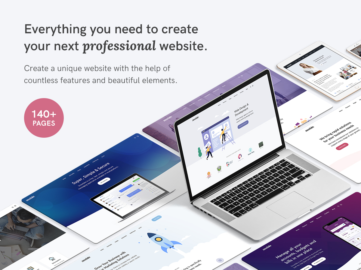 Snowlakeは、140ページを超えるページ、300を超えるUI要素、9つのヘッダー、7つのフッター、および本格的なショップセクションを備えています。 Snowlakeで1マイル目立ち、ビジネスを新しい高度に成長させましょう。