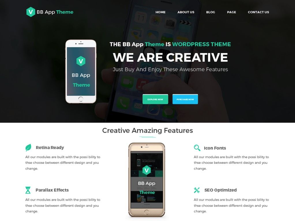 モバイルアプリは、すぐにはどこにも行きません。 モバイルアプリの需要は今後も増え続け、モバイルアプリのランディングページとして機能する高品質のWordPressテーマデザインの需要も高まります。 今回のまとめでは、BBモバイルアプリのテーマを取り上げます。 これはレスポンシブWPテーマであり、すっきりとしたデザインと強力な機能、モバイルアプリの目的を説明するために必要な正確なレシピ、そしてそれを使用する人にどのように役立つかを示しています。 BB Mobileのデザインは、無理なくナビゲートするのが簡単で、このような美しいテーマの最終版を作成するプロセスにかなりの思考が注がれていることを明確に示しています。