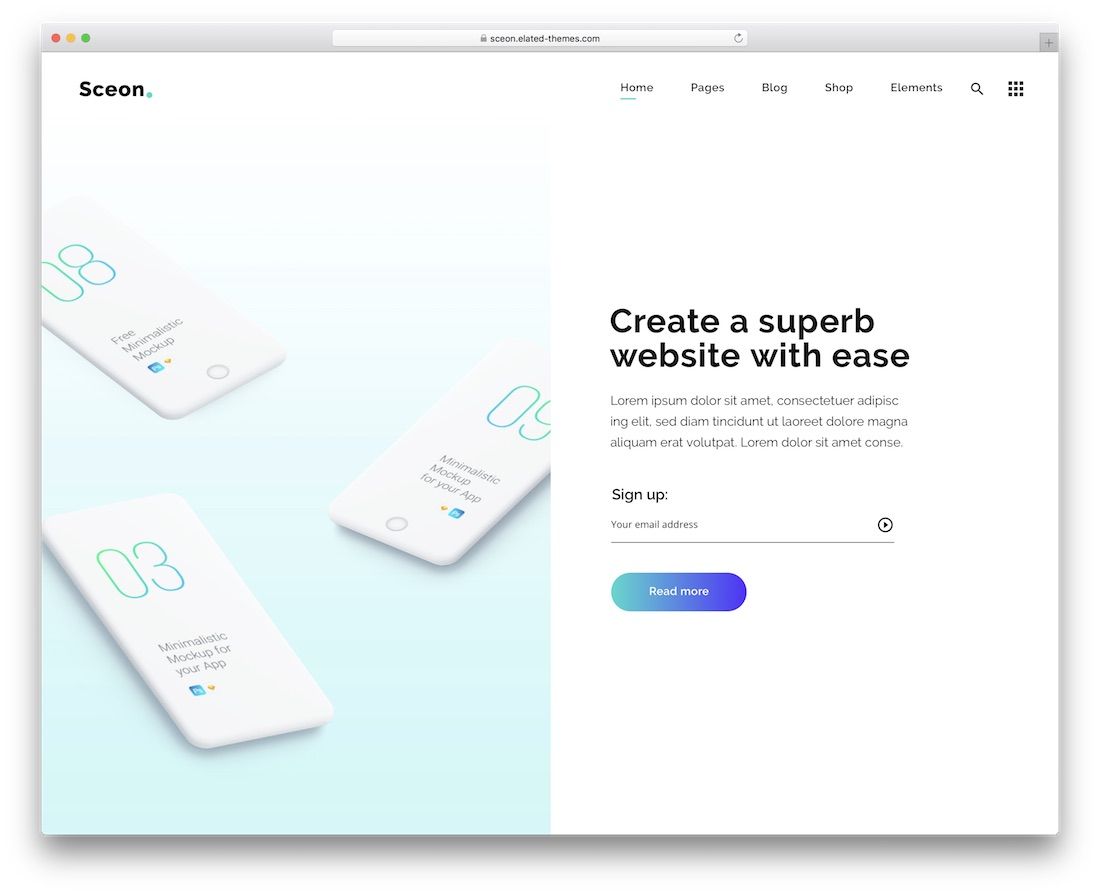 Sceonは、すっきりとした最小限の外観の印象的なアプリショーケースWordPressテーマです。 それはあなたがそよ風であなたのプロジェクトを始めるのを助けるあなたのサービスでたくさんのデモを持っています。