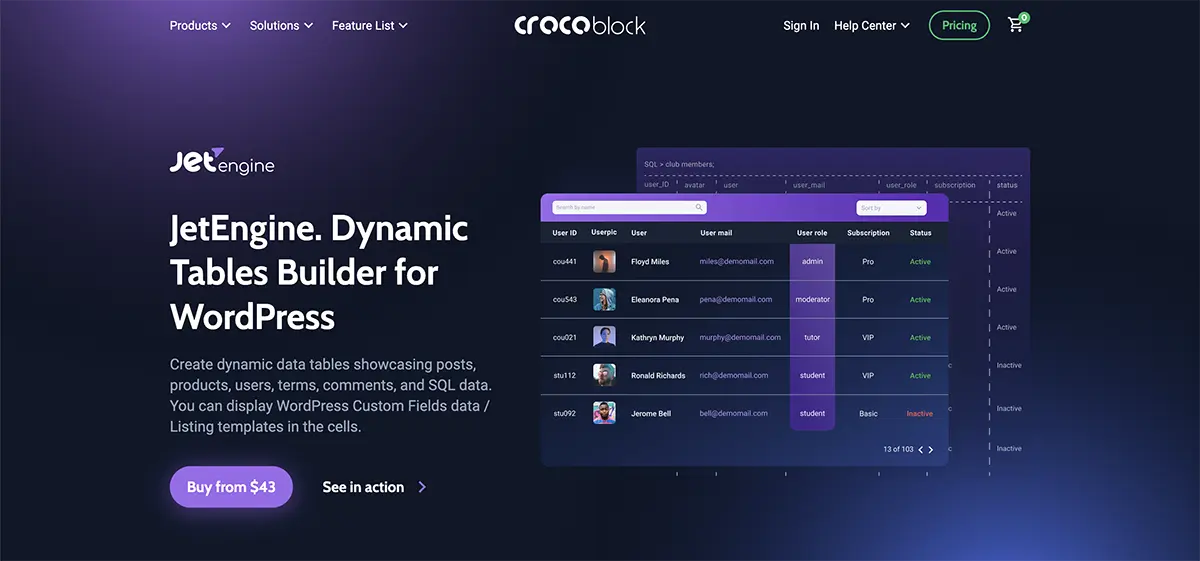JetEngine WordPress Tables builder を使用すると、Elementor および Gutenberg エディターで動的テーブルを簡単に作成できます。