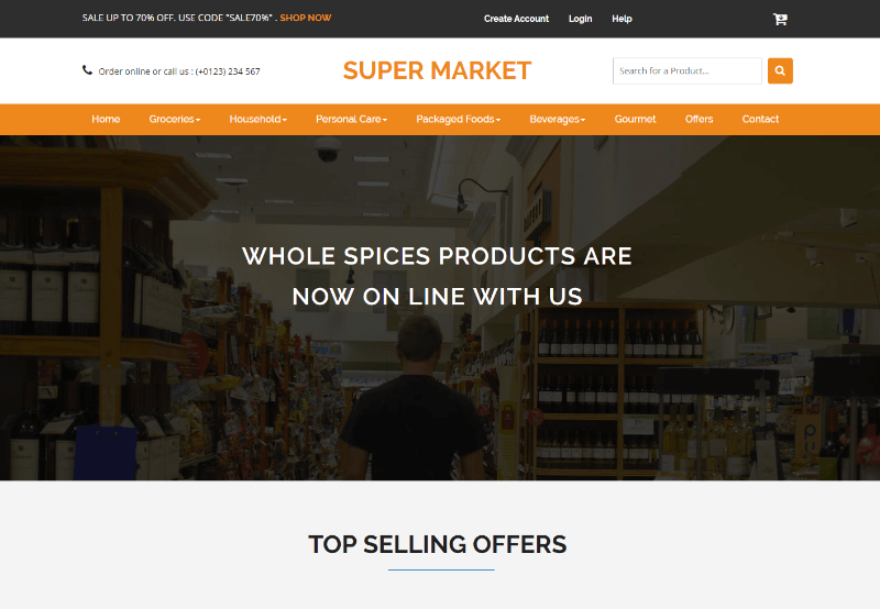スーパーマーケットはプレミアム e コマース テンプレートであり、この独自に設計されたテンプレートを使用することで、オンライン販売 Web サイトがオンラインで利益を上げ、ビジネスを想像以上に拡大するための最良のソリューションです。 このモダンで創造的にデザインされたテンプレートには、人目を引くホバー効果、カート プラグインへの追加、製品詳細ページ、製品表示とそのオプション用の適切に構成されたページ、細部に至るまで非常にクリーンでミニマルなデザインなどの素晴らしい機能があります。 このテンプレートは 100% レスポンシブなクロスブラウザー テンプレートで、すべてのデバイスと互換性があり、すべての画面サイズで表示されます。