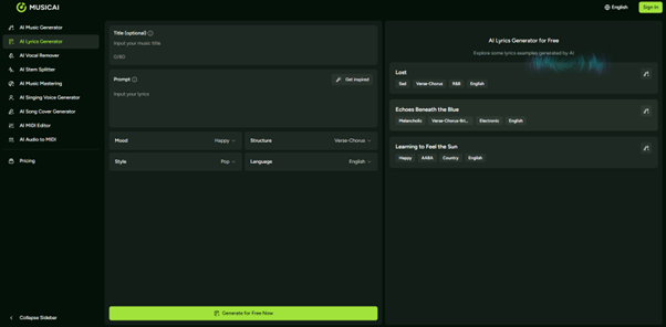 この 3 ステップのフロー (アップロード、分析、ダウンロード) は、最新の AI オーディオ ツール全体で見られるパターンと一致しますが、MusicAI の強みは、オーディオから MIDI への変換が、テキストから音楽への変換、歌詞から曲への変換、その他の作成機能と 1 つのワークスペース内で並行して行われることです。これにより、複数のサービスをやりくりすることなく、変換された MIDI スケッチから完全なアレンジメントに移行したり、AI 生成のバッキング トラックと組み合わせたりすることが簡単になります。