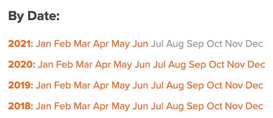 Webサイトに多くのコンテンツがある場合、これを整理する1つの優れた方法は、毎月のアーカイブを表示することです。