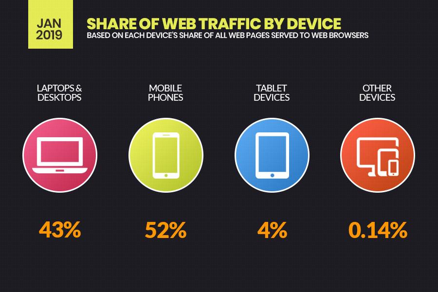 - すべてのWebサイトトラフィックの53%以上が、レスポンシブサイトを使用している人々から来ています。