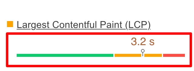 たとえば、以下のスクリーンショットでは、緑色のバーの 58% インジケーターは、PSI によって観測されたすべての LCP 値の 58% が 2.5 秒未満 (またはそれに等しい) であることを示しています。