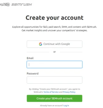 Semrushの使用を開始するには、Semrushでアカウントを作成する必要があります。これにより、人気のあるBacklinkCheckerToolを含む広範なツールセットにアクセスできるようになります。