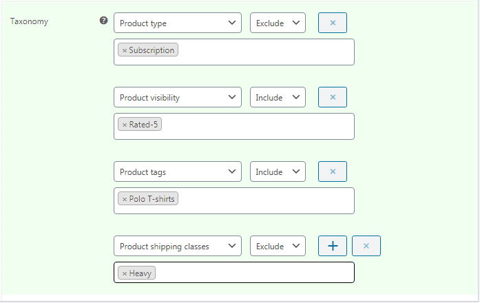 これは、特定の属性を持つすべての製品にクーポンを適用する場合に便利です。 または、適用されるクーポンから製品属性を除外します。 先に、各バリエーションを入力する必要があります。 しかし今ではありません。