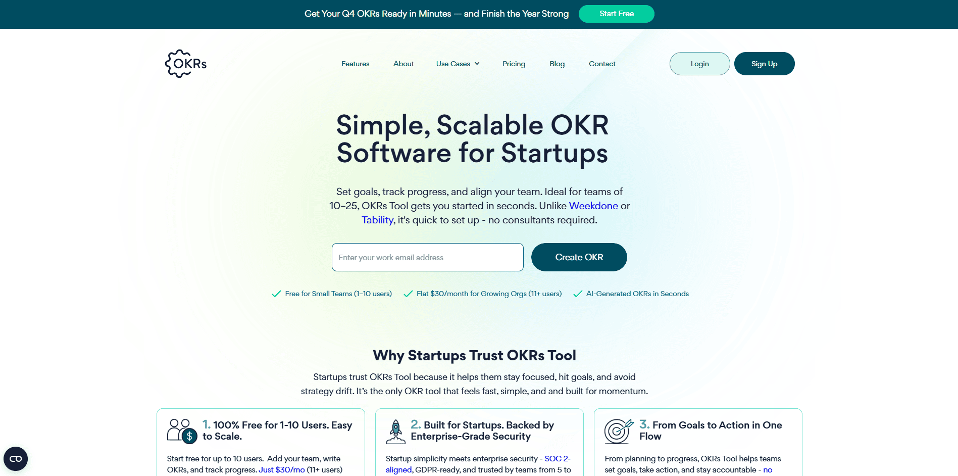 - OKRSツール:シンプルでスタートアップに優しく、小さなeコマースチームに最適です。 Slackと統合されるため、更新は埋もれません。