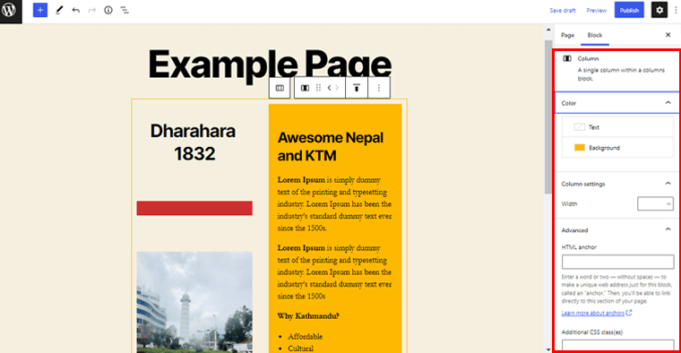 同様に、ブロックの「 + 」アイコンをクリックして、同じ列に別のブロックを追加できます。
