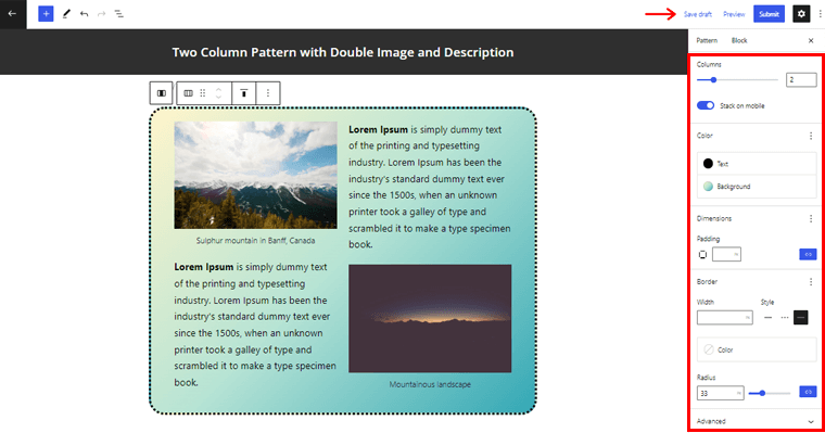 このように、提供されているすべてのカスタマイズの可能性を使用して、WordPressブロックパターンを選択に合わせてカスタマイズできます。
