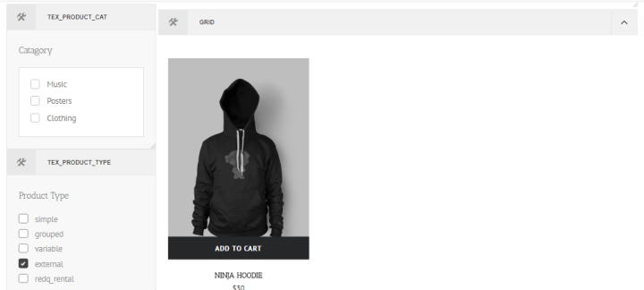 ここから投稿タイプを選択します。 製品を選択します。 これは、検索ページでグリッドを介して結果を表示するカテゴリであるためです。