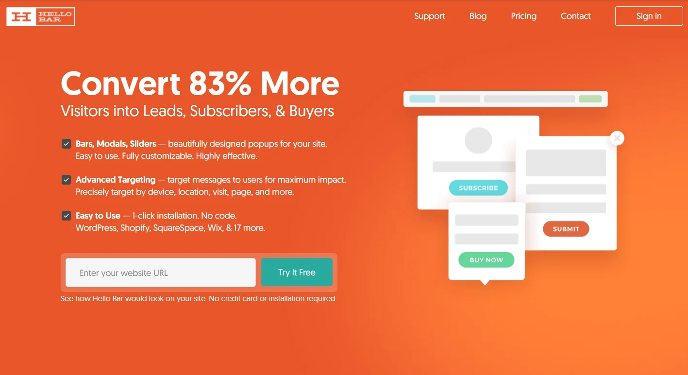 HelloBarはSAASプラットフォームであり、無料バージョンを提供します。これにより、電子メールをキャプチャしたり、リンクやメッセージを共有したりできるすばらしい通知バーを作成できます。