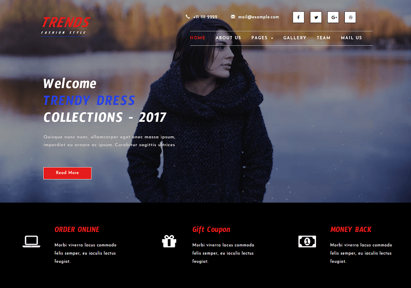 가운은 모델 및 스타일 제작자를 위한 깨끗하고 평평한 부트스트랩 패션 카테고리 다목적 웹 템플릿입니다. 그것은 어떤 패션 카테고리 웹사이트처럼 쉽게 사용자 정의할 수 있습니다. 가운에는 엄지손가락 반응형 웹 디자인 템플릿이 포함된 무료 Flat Bootstrap 전체 페이지 배경 슬라이더가 제공됩니다. 최고의 무료 패션 HTML 웹사이트 템플릿 중 하나입니다. 모든 유형의 패션 웹사이트에 이 템플릿을 사용할 수 있습니다. 가운 웹 템플릿은 Fancy 스타일로 제작되었지만 사용자 요구 사항에 따라 사용할 수 있습니다.