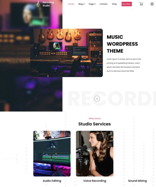 Music Recording Studio를 사용하면 예술적 기술을 선보이고 팬에게 매력적인 방식으로 작품을 선보일 수 있습니다. 의심할 여지 없이 이것은 가장 기능적이고 능숙하며 모바일 친화적이며 시각적으로 매력적인 WordPress 테마입니다. 이 WP 테마는 앨범, 아티스트, 오디오 회사, DJ 아티스트, 음반사, 대중 음악 밴드, 음반 매장, 축제를 홍보하는 웹 사이트 및 음악 비즈니스를 다루는 더 많은 웹 사이트와 잘 작동합니다. 이 다목적 테마는 견고한 토대 위에 구축되어 기능이 풍부하고 기능이 풍부한 웹사이트를 만들 수 있습니다.