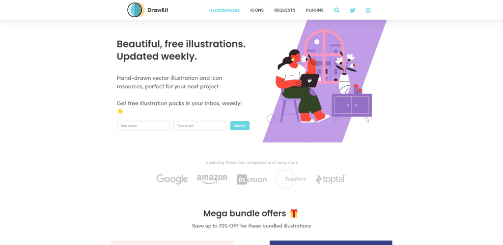 따라서 작업 중인 프로젝트 유형에 따라 – 모든 일러스트레이션을 대신할 디자이너를 고용하거나 대안으로 – 이 기사에 나열된 무료 벡터 일러스트레이션 플랫폼 중 하나를 사용할 수 있습니다. 많은 사람들이 이미 unDraw 및 DrawKit 과 같은 "오래된 사용자"에 익숙하다고 생각하지만, 수년 동안 많은 대안이 등장했습니다.