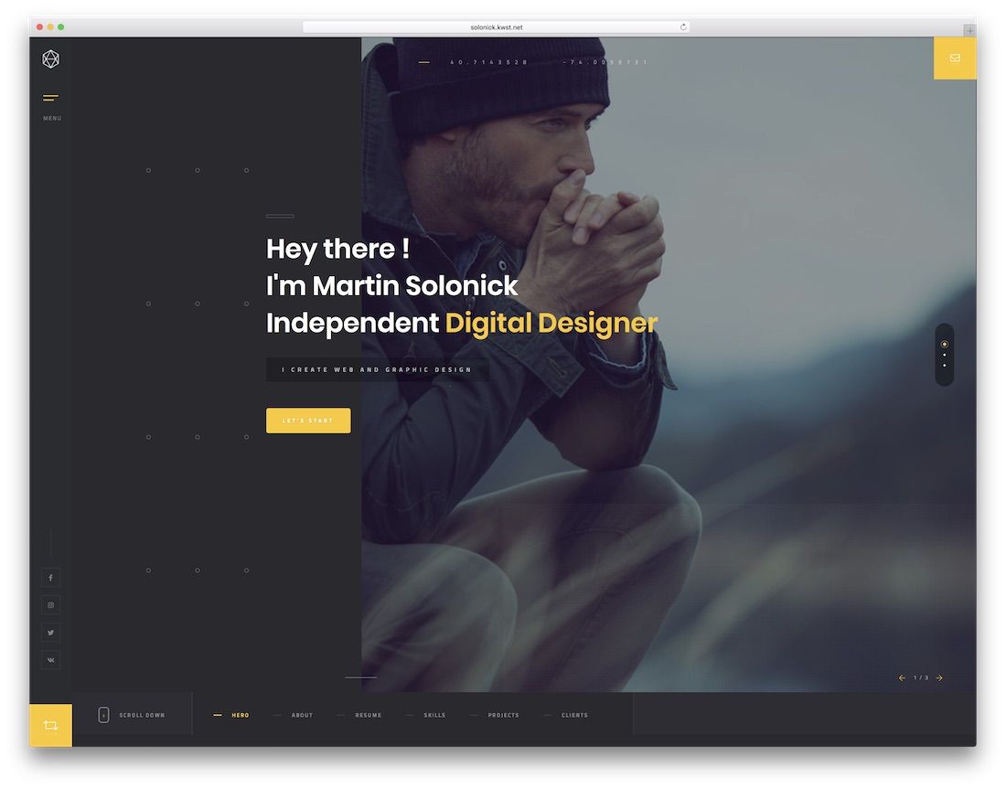Solonick z pewnością jest narzędziem, które musisz sprawdzić ze względu na jego fantastyczne podejście do projektowania stron internetowych. Jeśli potrzebujesz kreatywnej i niepowtarzalnej witryny, musisz pobrać szablon witryny CV Solonick HTML5 i pozwolić jej działać magicznie. To łatwe w użyciu rozwiązanie zawiera osiem różnych stron głównych do wyboru. Pamiętaj, że Solonick jest bardzo artystyczny, ale możesz go edytować i ulepszać zgodnie z życzeniem.