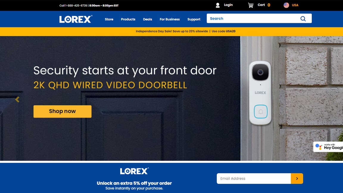 | Lorex | Sem mensalidades | Soluções de negócios acessíveis, milhares de produtos de ponta | Suporte por telefone, suporte por e-mail, base de conhecimento |