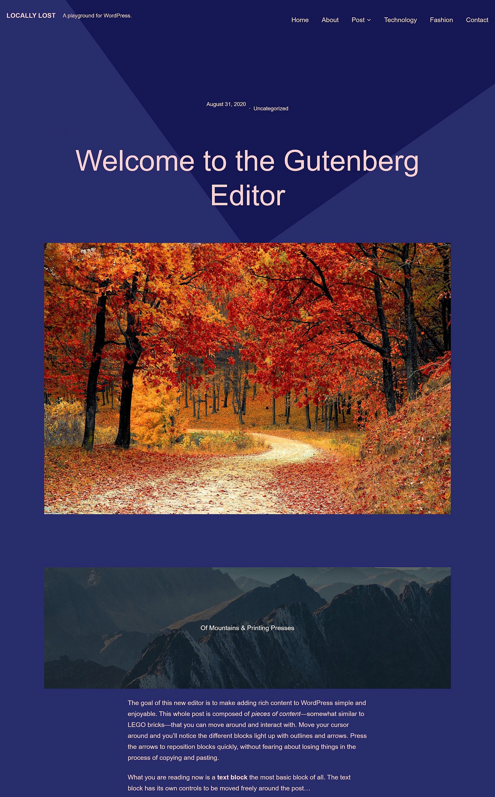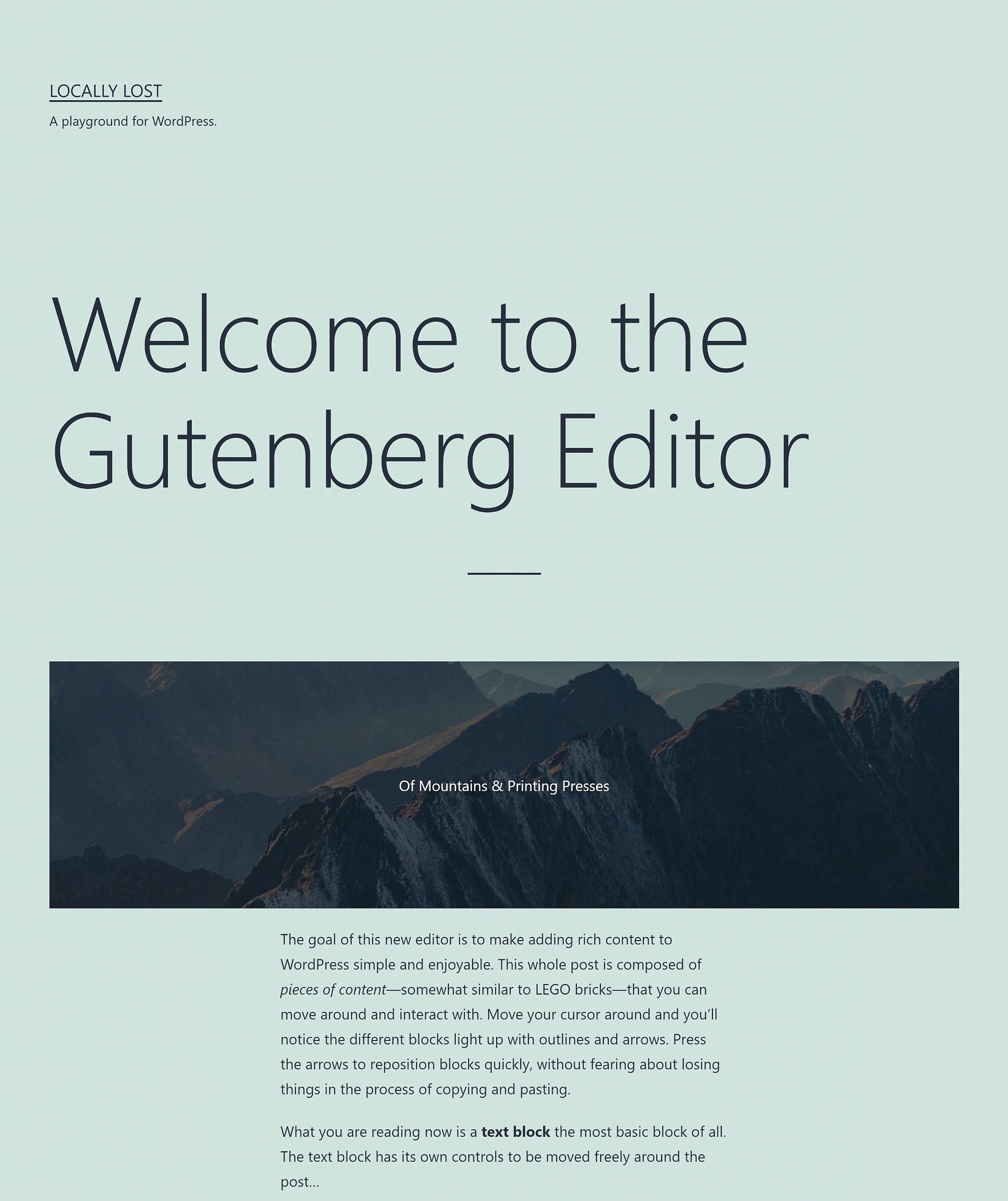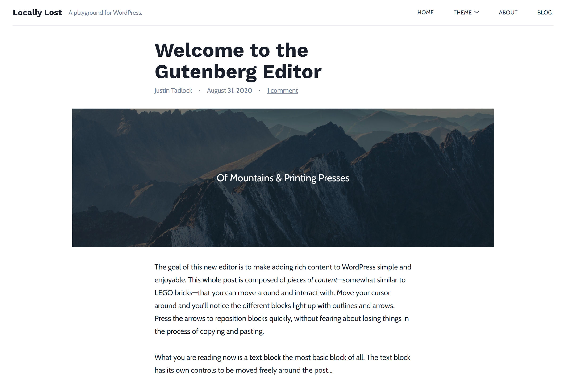 A chamada para exploração se concentrou principalmente em recursos globais relacionados ao design. No entanto, na minha experiência, isso tende a importar muito menos do que a aparência do conteúdo de um usuário. A primeira coisa que faço ao testar qualquer tema é carregar um post de demonstração. Ultimamente, este tem sido o post de teste “Bem-vindo ao Editor Gutenberg”. A questão principal: Posso ler o conteúdo confortavelmente? Se eu não passar dessa fase, simplesmente desativo o tema.