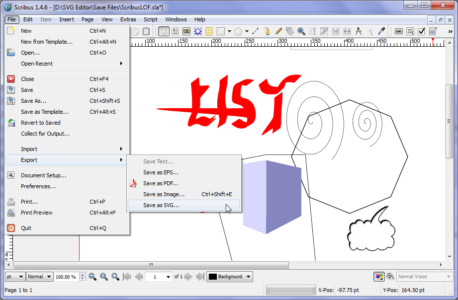 Editores de texto podem ser usados para gerar e editar imagens SVG . As imagens podem ser pesquisadas, indexadas, com script e compactadas usando uma variedade de formatos de arquivo. É possível criar imagens ScalableVNG.