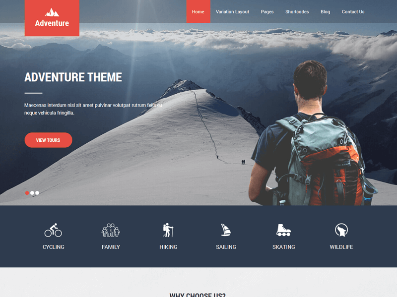 O tema Adventure Lite WordPress pode ser usado para aventura, esportes, caminhadas, trekking, vela, rafting, jogos, diversão, caminhada, caça, militar, alpinismo, esqui, surf e outros esportes de aventura. Também pode ser usado para passeios e viagens, camping, hotel, estudantes, acampamentos de verão, patinação, motéis, indústria de serviços e outros sites corporativos, de negócios, fotografia e portfólio pessoal. É simples, flexível e multifuncional com uso multi-indústria. Adventure Lite é compatível com WooCommerce e outros plugins populares. Um dos melhores temas populares gratuitos do WordPress. Também é compatível com plugins de construtor de páginas como Elementor, Live Composer, Beaver Builder e plugins multilíngues como Polylang, qTranslate X e outros também compatíveis.