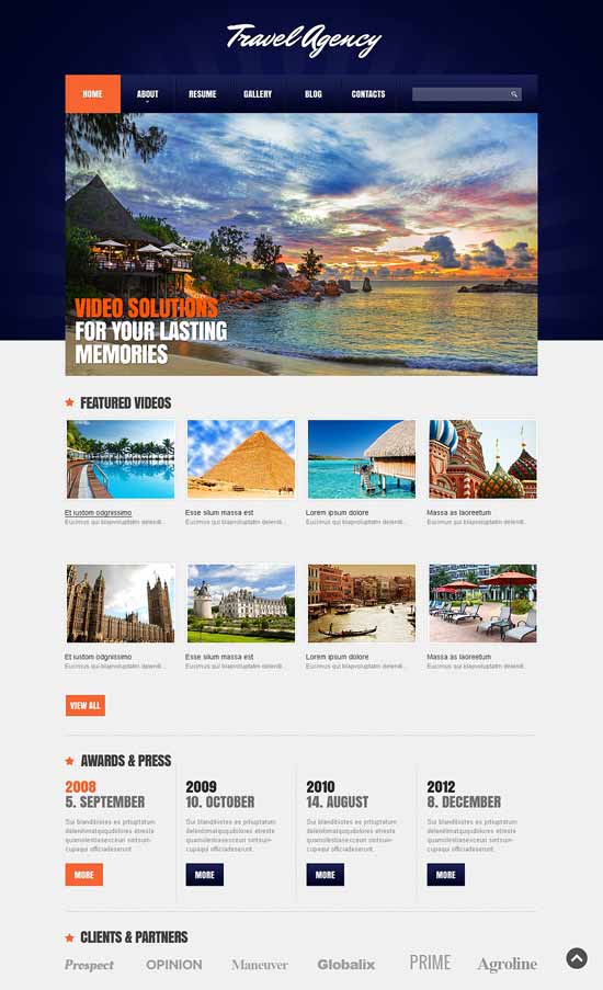 As pessoas viajam para descobrir o mundo e apreciá-lo em toda a sua beleza. Dirigindo-se a agências amplamente confiáveis, encontram os destinos desejados e as viagens com que sonhavam. Um site bem feito com uma busca sábia facilitará o processo da melhor escolha de viagem. Aqui está um tema com um design centrado em conteúdo tão bem organizado que trará as principais informações da empresa no foco das atenções. Os visitantes apreciarão todas as fotos maravilhosas da galeria de imagens e navegarão por toda a gama de ofertas organizadas em categorias. Use este tema para um site de viagens que abrirá novos destinos para o público.
