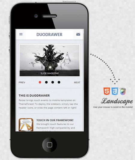 Provocateur° é um template construído em jQuery Mobile, HTML5 e CSS3 desenvolvido para dispositivos móveis. Otimizado para dispositivos Apple.