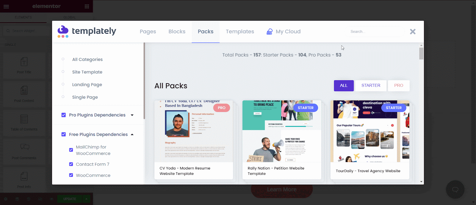 Você pode escolher o melhor modelo de site de cuidados com a pele para Elementor em uma variedade de modelos. Templately é a famosa biblioteca de modelos entre eles, se você quiser usar modelos elegantes e gratuitos. Esta biblioteca possui mais de 1300 modelos visualmente atraentes , responsivos e fáceis de usar para ajudá-lo a criar um impressionante site de loja de cuidados com a pele WordPress. Você só precisa instalar o plugin Templately no WordPress e ter acesso a todos os seus modelos gratuitos.