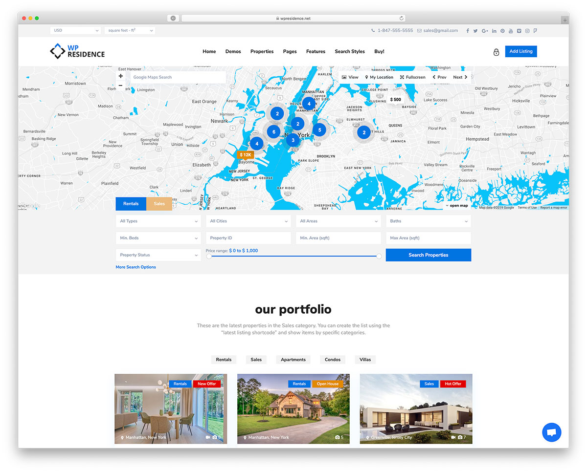 Reales este o temă inovatoare WordPress imobiliară, care are un design curat, modern și extrem de intuitiv.