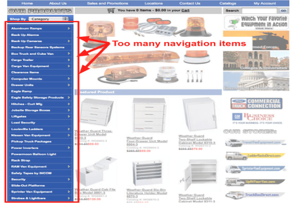 După cum se arată în captura de ecran de mai sus, există o mulțime de elemente de navigare care pot deruta utilizatorul. Utilizatorului îi este dificil să caute informațiile pe care le caută. Prin urmare, devine foarte iritant și acest lucru poate duce la pierderea clientului.
