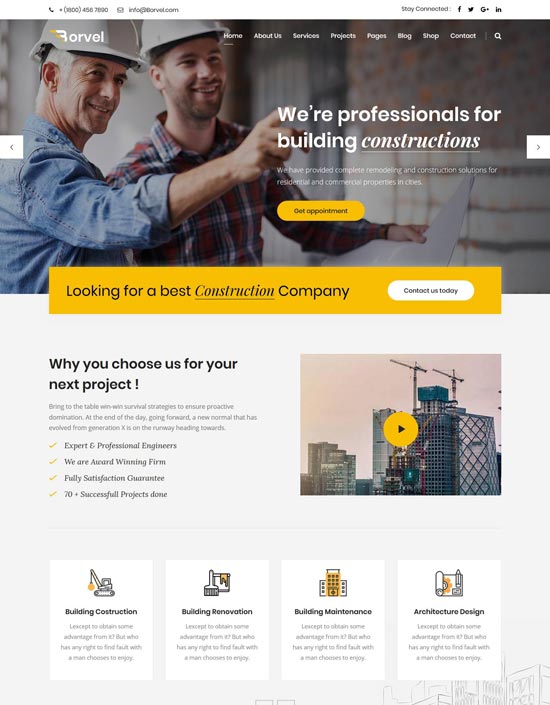 40+ Cele mai bune șabloane de site-uri pentru arhitectură și construcții 2022