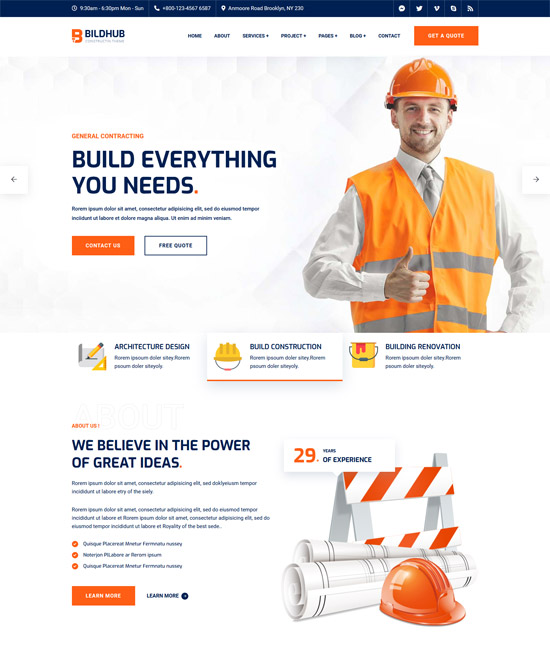 Publicat: 2022-06-06Toate cele mai bune șabloane de site web html pentru arhitectură responsive și construcții sunt cele mai bune șabloane, în special pentru industria constructorilor care au nevoie de site-uri web pentru arhitecți de design modern. Aflați, folosind șabloane profesionale pentru site-uri web, astăzi suntem bucuroși să vă arătăm. Designul acelei arhitecturi este rezultatul gândirii creative a designului web. Designul său curat și bine definit vă va face cu ușurință site-ul în evidență în vecinătatea dvs. web, în timp ce tonul său modest va atrage mai mulți oameni. Construction Bootstrap Template este un șablon HTML5 receptiv, curat și modern. Este special conceput pentru pagini de destinație. Acest șablon de compilare se bazează pe cea mai recentă versiune a grilei Bootstrap. Șablonul site-ului pentru construcții are toate caracteristicile de care aveți nevoie pentru afacerea dvs. Aceasta este cea mai bună opțiune pentru un site web profesional, deoarece este complet personalizabil.