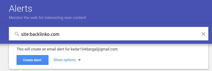 Puteți face acest lucru cu ușurință accesând alerte Google și tastând site:yourcompetitor.com și creând alertă.
