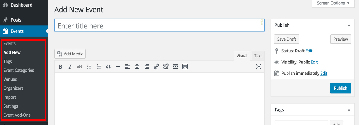 Următorii pași dictează cum să creați un eveniment utilizând pluginul WordPress Calendarul evenimentelor