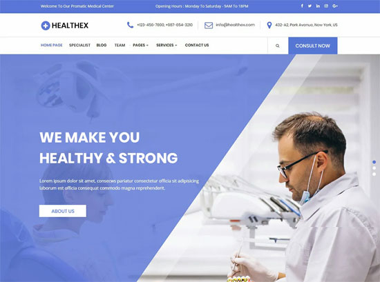Hospital Health Care este o temă receptivă și complet personalizabilă pentru crearea de site-uri web medicale și spitalicești. Designul șablonului este folosit pentru a proiecta și dezvolta site-uri web pentru spitale, medici, clinici, centre de sănătate sau centre de sănătate comunitare, magazine medicale, servicii de sănătate, stomatologie, farmacii, centre spa de masaj, chirurgi, stomatologi, centre de sănătate. Tema Hospital Health Care este compatibilă cu plugin-uri populare WordPress precum Elementor Page Builder, Gutenberg, Block-Enabled, Contact Form 7, WP Super Cache și multe altele.