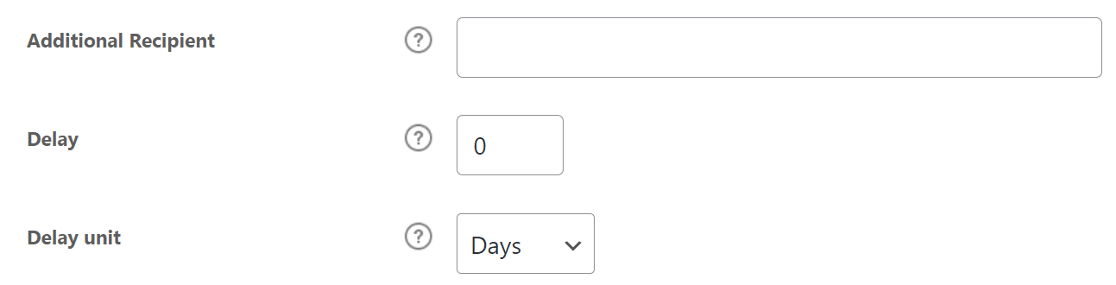 Pentru majoritatea notificărilor de bază, este recomandat să setați întârzierea la 0 zile. Acesta va trimite e-mailul imediat ce opțiunea este declanșată.