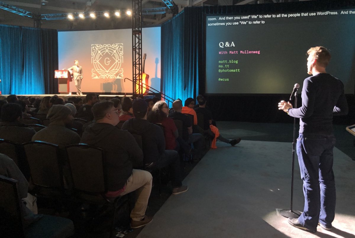 „Este motivul pentru care suntem aici”, a spus Mullenweg. „WordPress nu este un lucru fizic; nu este un set de coduri. Este un fel de idee. WordPress este susținut de toată credința și creditul fiecărei persoane și companii care depind de el.”