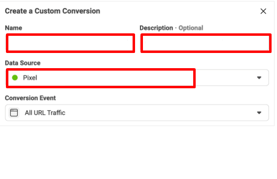 Există câteva informații pe care trebuie să le completați pentru a crea o conversie personalizată: