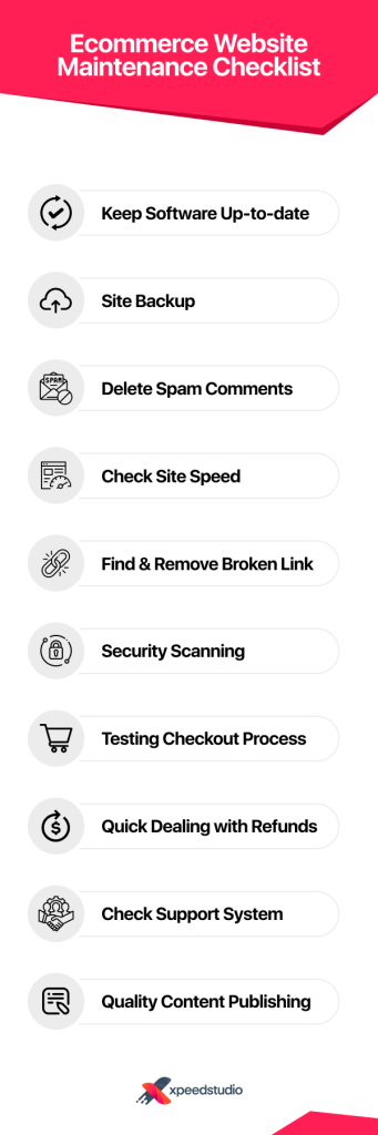 Вот список из 10 лучших задач по обслуживанию веб-сайта, которые помогут поддерживать ваш веб-сайт для повышения его производительности. Ознакомьтесь с этим важным контрольным списком обслуживания электронной коммерции: