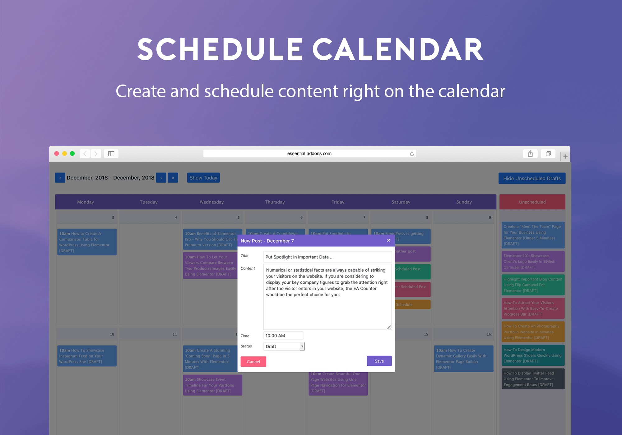 WP Scheduled Posts — еще один плагин редакционного календаря, который позволяет легко управлять несколькими авторами из одного места. Он включает в себя визуальный календарь, которым можно управлять с помощью перетаскивания, что позволяет пользователям легко добавлять сообщения в очередь или создавать новые сообщения внутри календаря. Плагин имеет виджет панели инструментов, который отображает статусы сообщений для одного или нескольких авторов.