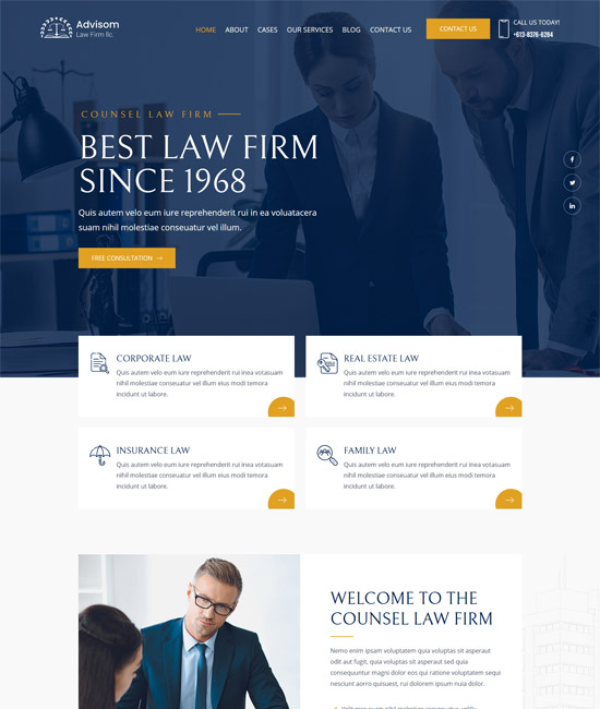 Advisom — это тема WordPress, специально разработанная для юристов, юрисконсультов, юридических контор, юристов, поверенных, юристов, консультантов, правосудия, адвокатов и других юридических и связанных с законом услуг. Это также идеальное решение для веб-сайта частного адвоката, а также для веб-сайтов более крупных юридических фирм.