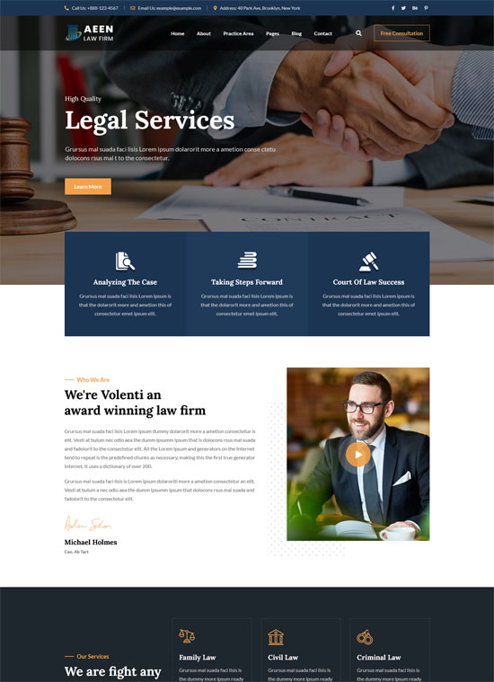 Премиальная тема WordPress для юридической фирмы, созданная специально для юридических фирм, адвокатов, юридических бюро, адвокатов, поверенных, юрисконсультов, советников, консультантов, консалтинговых фирм. Он охватывает все, что вам нужно для веб-сайта юридического бизнеса, от областей практики до тематических исследований, членов команды и контактных страниц. Он имеет адаптивный дизайн, который отлично смотрится на настольных и мобильных устройствах. Тема поставляется с 8 домашними страницами, домашней страницей с видео, 5 пользовательскими вариантами заголовка и 2 вариантами нижнего колонтитула, практическими областями, примерами из практики, командой, контактными страницами.
