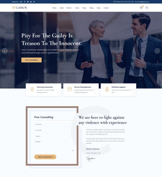 Canun — тема WordPress для юристов. Это современная, красивая и элегантная тема авокадо и авокадо. Вы можете изменить все разделы по своему усмотрению. Существует настраиваемый вариант, и каждый раздел является уникальным созданием для адвокатских услуг. Он имеет уникальный дизайн с удивительными функциями для юристов и юристов, которые хотят создать свой веб-сайт. Мы создали все функции юриста, которые нуждаются в услугах адвоката и адвоката. Там каждый раздел уникально креативен.