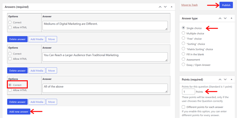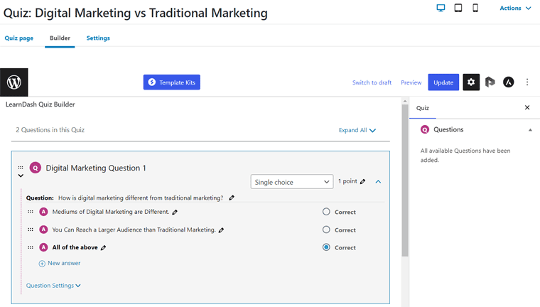 LearnDash предлагает один из лучших конструкторов викторин среди различных программ LMS для веб-сайтов онлайн-курсов. Итак, давайте проверим все расширенные функции викторины: