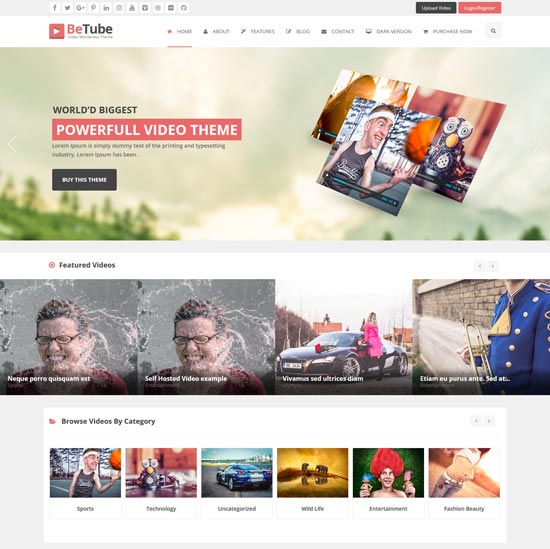 Betube — самая мощная и самая большая адаптивная видеотема WordPress, разработанная специально для видеосайта. Betube предлагает вам последние тенденции дизайна видео-сайта с красивой страницей шаблонов, фиксированной во всю ширину и изобилующей элегантностью и очарованием. У вас будет новаторский полностью функциональный видео-сайт в течение нескольких минут после покупки. С более чем 10 уникальными дизайнами домашней страницы мы уверены, что вы найдете дизайн, который соответствует вашим потребностям.