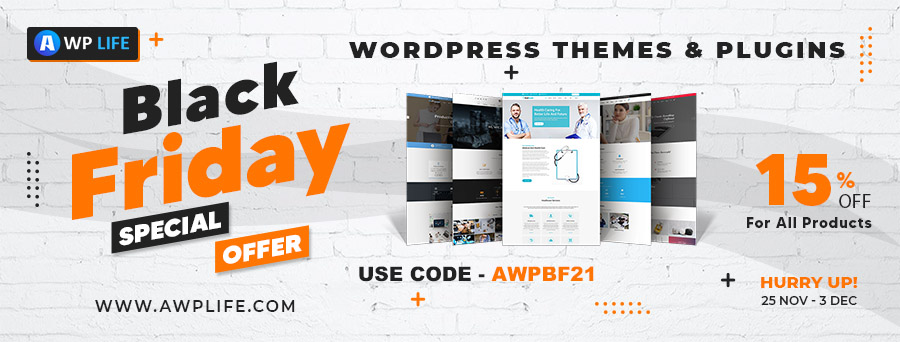 В этом году A WP Life предлагает выгодные предложения в честь Черной пятницы на все премиальные темы и плагины WordPress. Получите дополнительную скидку на любимые товары.